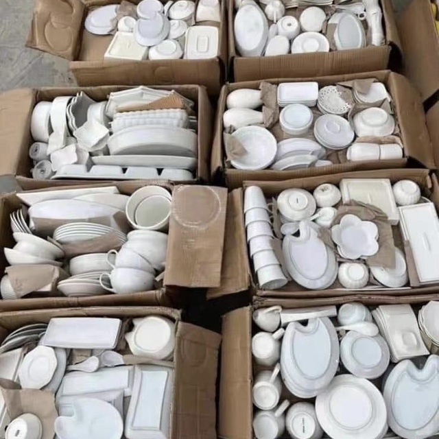 Cerámica por Cartón, venta al por mayor, mezcla de cerámica blanca para el hogar, vajilla barata, platos, cuencos, tazas, platillos
